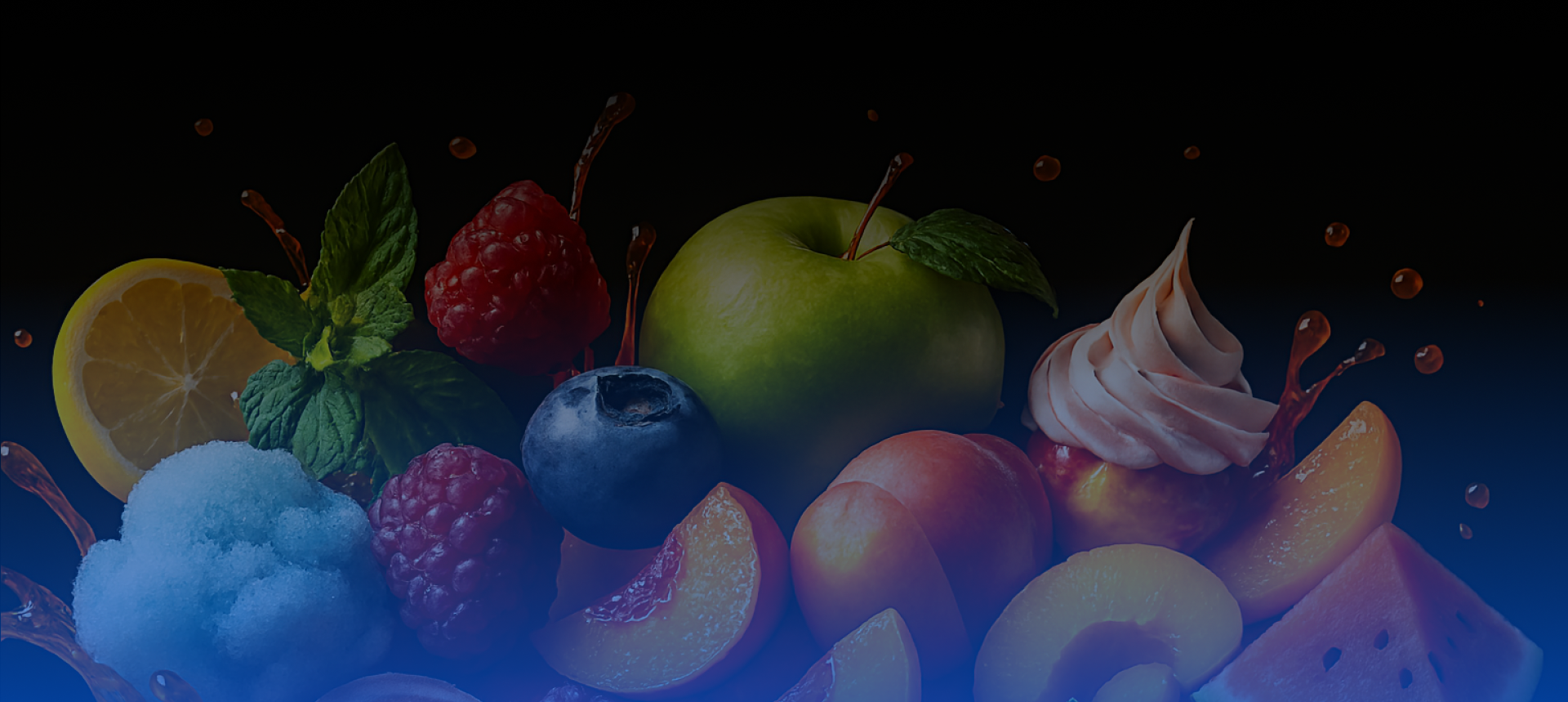 Green Apple + Mixed Berries + Cool Mint + Cotton Candy + Fruit Splash + Watermelon Mint + Blueberry Razz lemon + Pineapple Mango + peach Burst + Strawberry Sundae